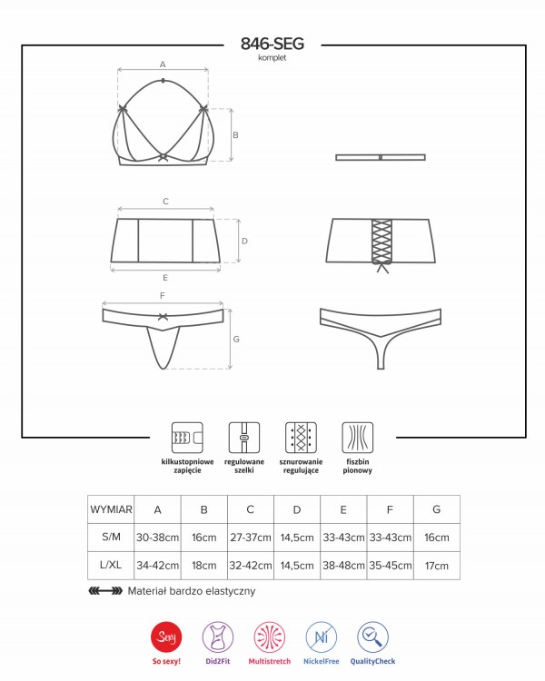 Комплект "Obsessive" лиф, трусики, корсаж, S/M