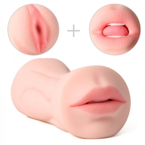Мастурбатор с одной стороны представлен "сочной" вагиной с ярко выраженными половыми губками, с обратной стороны реалистичный приоткрытый ротик с очерченными зубками и язычком жаждет проникновения!